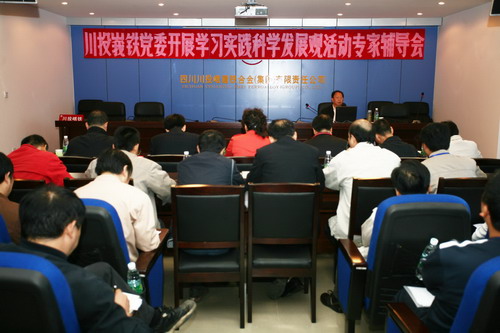 10月27日下午,川投峨鐵公司在十樓階梯會議室舉辦了開展深入學習實踐科學發(fā)展觀活動專家輔導報告會。報告會邀請樂山黨校副校長、經(jīng)濟學教授劉國春輔導講解,公司領(lǐng)導穆婷云、彭少奇 、唐華應(yīng)、史江濤、余華偉、劉瓊?cè)A以及全體中層干部和部分黨小組長近120余人參加了會議。
