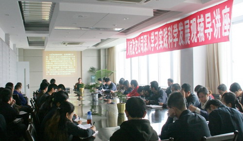 四川瀘州川南發(fā)電有限責任公司按照深入學習實踐科學發(fā)展觀活動實施方案的安排,認真做好黨員干部科學發(fā)展觀學習教育工作,11月13日上午,特邀請瀘州市委黨校副校長、教授陳永躍到公司舉辦科學發(fā)展觀輔導講座。公司領(lǐng)導班子全體成員,以及中層干部和黨員參加了講座。