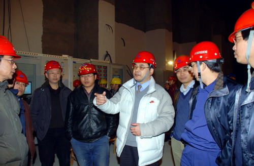 今天上午總經(jīng)理孫志祥冒著凌厲的寒風來到仁宗海電站廠房,指揮田灣河流域梯級水電站機組最后一個轉(zhuǎn)子吊裝?,F(xiàn)場指揮長向?qū)O志祥總經(jīng)理報告:起吊準備工作就緒,請指示。孫志祥總經(jīng)理在詢問、檢查、確認各項準備工作后,發(fā)出起吊指令。2008年12月19日10時12分,260噸重的轉(zhuǎn)子準確吊入機組定子中心。