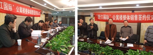2009年1月19日,雙方在川投集團(tuán)1501室舉行了“錦江國(guó)際”公寓樓整體銷售簽約儀式,集團(tuán)公司三產(chǎn)部經(jīng)理梅林、副經(jīng)理薛波等領(lǐng)導(dǎo)代表集團(tuán)公司出席。在友好的氣氛中,房地產(chǎn)公司法人代表王建、委托代理人蔡昌銀與四川宏凌公司法人代表冉衛(wèi)東、委托代理人羅小林共同簽訂了錦江國(guó)際項(xiàng)目公寓樓《商品房買賣合同》和《備忘錄》。二月初,已收到宏凌公司支付的第一批購(gòu)房款。至此,“錦江國(guó)際”項(xiàng)目在2009年初成功實(shí)現(xiàn)了公寓樓整體銷售,在全球房地產(chǎn)行業(yè)的隆冬時(shí)節(jié)實(shí)現(xiàn)了開(kāi)門(mén)紅,銷售所得資金將進(jìn)一步確保2009年項(xiàng)目順利完工。