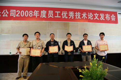 會上,唐書記就本次論文的評審情況作了介紹,總經(jīng)濟(jì)師蒲曉東同志宣布2008年度優(yōu)秀論文及作者名單。隨后,公司領(lǐng)導(dǎo)、老專家為獲得優(yōu)秀論文的同志頒發(fā)了獎狀,并對優(yōu)秀論文進(jìn)行了現(xiàn)場發(fā)布。