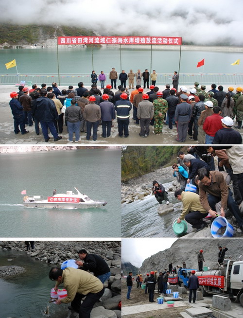 2009年10月22日上午,位于四川省甘孜州康定縣的仁宗海水庫右岸彩旗飄揚(yáng),“深入貫徹落實(shí)科學(xué)發(fā)展觀,共建生態(tài)文明”、“保護(hù)水生生物資源,促進(jìn)人與自然和諧發(fā)展”等標(biāo)語高懸醒目,由四川省水產(chǎn)局、甘孜州水利局、康定縣水利局聯(lián)合組織,田灣河公司承辦的四川省田灣河流域仁宗海水庫增殖放流活動(dòng)儀式在這里隆重舉行。