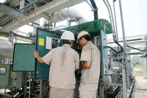 巡檢人員檢查設(shè)備