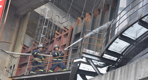8月18日,四川瀘州川南發(fā)電有限責(zé)任公司組織在公司承包#2機(jī)組脫硫設(shè)施技術(shù)改造工程的武漢凱迪電力環(huán)保有限公司等外委單位,在技改工程現(xiàn)場(chǎng)舉行消防演習(xí)。演習(xí)假設(shè)正在施工的現(xiàn)場(chǎng)發(fā)生火警,公司消防隊(duì)聞警出動(dòng),與現(xiàn)場(chǎng)人員攜手合作,迅速撲滅火險(xiǎn),確保了設(shè)施和人員安全。由于公司消防工作有預(yù)案、有宣教、有組織、有人員、有檢查,消防演習(xí)有條不紊,圓滿成功。