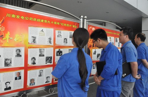 為紀念中國共產(chǎn)黨建黨90周年,川南發(fā)電公司專門訂購《中國共產(chǎn)黨歷史和成就展》、《永遠的豐碑》等資料圖片,在公司舉辦“紅色圖片”宣傳展覽,生動再現(xiàn)中國共產(chǎn)黨領導中國人民進行革命和建設的奮斗歷程,展示在黨的領導下中國革命和社會主義現(xiàn)代化建設的輝煌成就,進一步增強廣大黨員、職工建設公司、發(fā)展公司的信心和決心。(姜波)