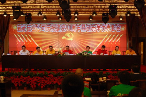 紅色六月,熱情似火。在七一來臨之際,新光硅業(yè)公司黨委于2011年6月28日隆重召開了“慶祝建黨九十周年暨創(chuàng)先爭優(yōu)表彰大會”。公司領(lǐng)導(dǎo)班子成員、專家、全體黨員、預(yù)備黨員和入黨積極分子近180人參加了會議。