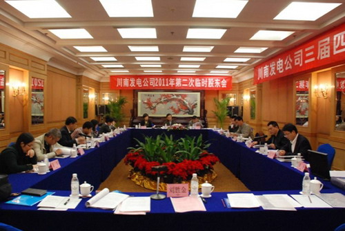 2011年11月16日,四川瀘州川南發(fā)電有限責(zé)任公司(以下簡(jiǎn)稱(chēng)公司)2011年第二次臨時(shí)股東會(huì)、三屆四次董事會(huì)在四川成都召開(kāi)。會(huì)議由川投集團(tuán)公司副總經(jīng)理、公司董事伍康定主持。公司副董事長(zhǎng)王文琦,董事郭愛(ài)國(guó)、張維群、肖群英、李勝章、唐得旗參加會(huì)議。監(jiān)事會(huì)主席任明霞,監(jiān)事鄭世紅、黃泰慧及公司相關(guān)管理人員譚先明、謝偉平、黃松、劉云戈等列席會(huì)議。
