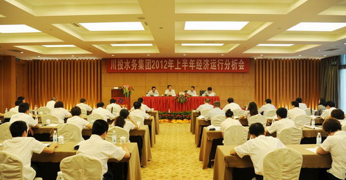7月26日,川投水務在川投國際酒店召開2012年上半年經(jīng)濟運行分析會暨安全工作會。川投集團副總經(jīng)理、川投水務董事長李文志,川投水務總經(jīng)理梁有國、副總經(jīng)理黃凱、副總會計師王靜軼、總經(jīng)理助理何曉蘇、川投水務本部全體員工及所屬公司總經(jīng)理、安全生產(chǎn)分管領導及部門負責人、財務部負責人近50人參加了會議。