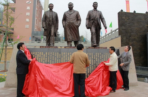 待到銅像揭幕時,湯子珍之子湯丙午老人飽含深情的回憶了小時候隨父親來到嘉陽的生活經歷和童年趣事,感謝嘉陽集團公司對工礦遺跡的保護與開發(fā)利用以及對幾位老先生的尊敬;隨后,嘉陽創(chuàng)始人后代共同為銅像揭幕,并向銅像深深鞠躬致敬。