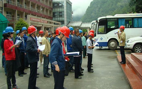 這一幕是公司2014年防洪度汛、地質(zhì)災害綜合應急演練的序幕。為深化公司安全生產(chǎn)管理,落實防洪度汛和地質(zhì)災害防控措施,公司以應急預案演練鍛煉員工隊伍,提高員工安全意識,檢驗各級人員對防洪度汛和地質(zhì)災害應急預案的掌握熟悉程度。經(jīng)過精心準備,公司編制了本次應急演練方案,成立了以公司黨委書記、總經(jīng)理張昊為總指揮的應急演練指揮機構(gòu),由副總經(jīng)理盧建奎現(xiàn)場組織指揮。演練采取實際演練與桌面推演相結(jié)合的方式進行,公司6個部門共70余人參加了演練。整個演練過程井然有序,參演人員嚴肅認真、行動迅速、處置得當,評判人員認真仔細,嚴格考評,演練達到了預期效果。