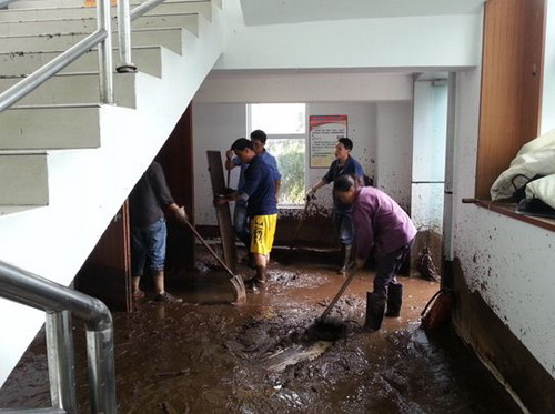 7月10日早上9點(diǎn),總經(jīng)理張昊在成都遠(yuǎn)控中心緊急組織召開“7.09山洪泥石流災(zāi)害抗洪搶險(xiǎn)”緊急會(huì)議,通報(bào)了現(xiàn)場(chǎng)受災(zāi)情況,研究決定以“保生活恢復(fù)”為主線開展搶險(xiǎn)救援工作。在現(xiàn)場(chǎng)工作的基礎(chǔ)上,成立了供電、供水恢復(fù)小組和交通、后勤保障小組分頭實(shí)施抗洪搶險(xiǎn),安排了任務(wù)分工之后即帶領(lǐng)副總經(jīng)理唐劍虹、盧建奎以及一批連夜組織的救援物資、食品、藥品趕赴現(xiàn)場(chǎng)。